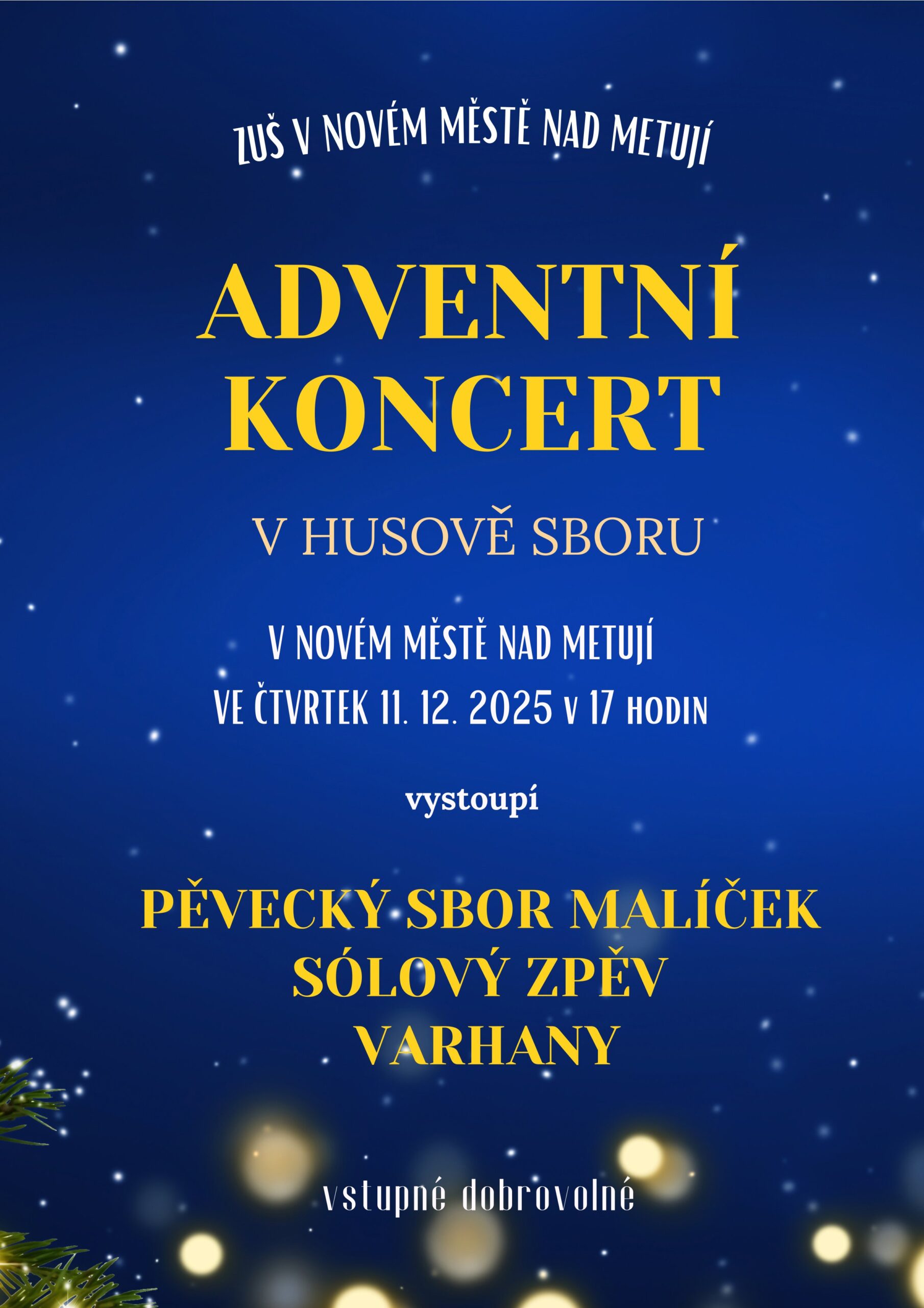 Adventní koncert 2025 17.00 11. 12. 2025 Husův sborHusova 402Nové Město nad Metují, 549 01491 471 846Zobrazit lokalituMapa Husův sbor Google kalendář Zobrazit celý kalendář